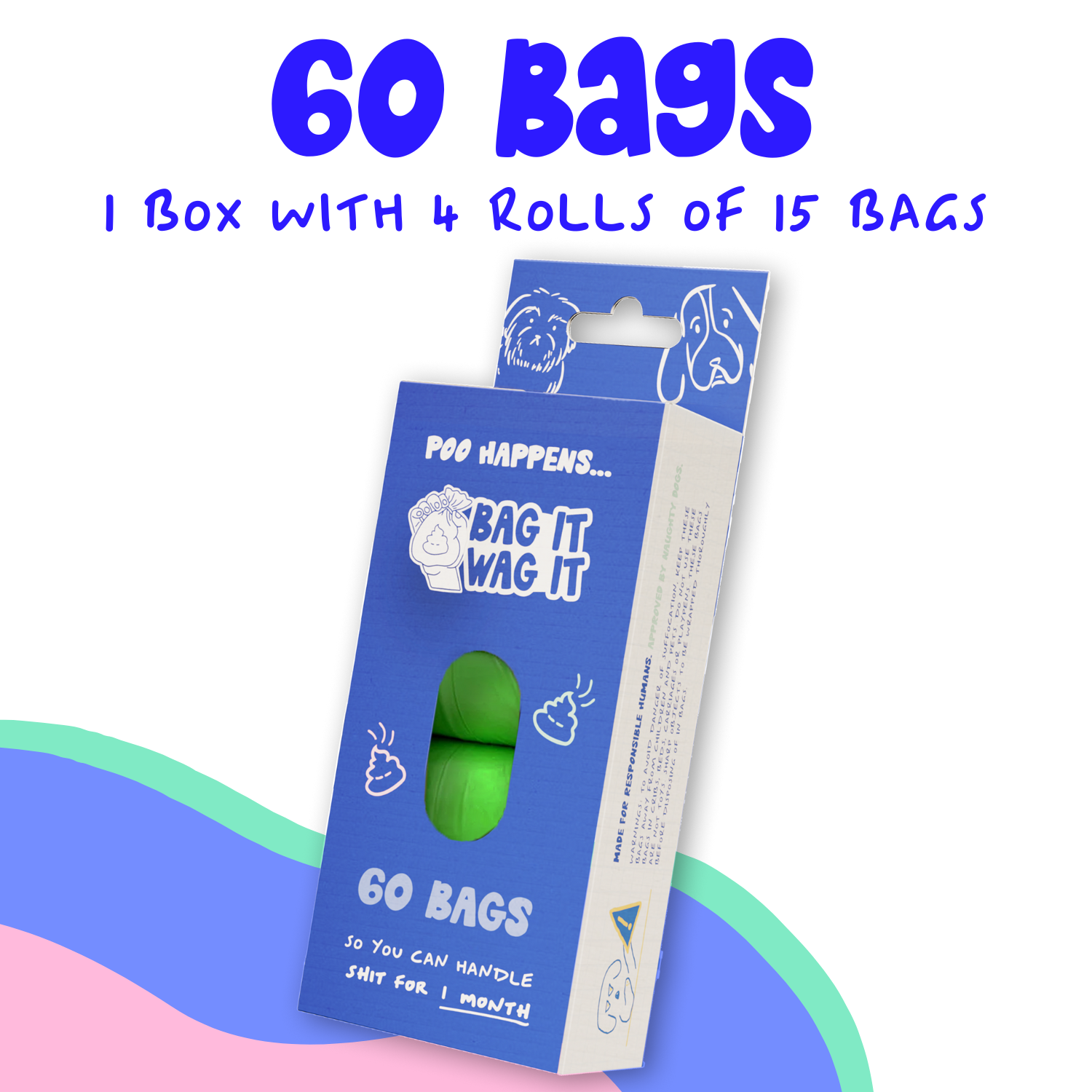 Compostable Dog Poo Bags (60 Bags | 4 Rolls of 15 Bags)